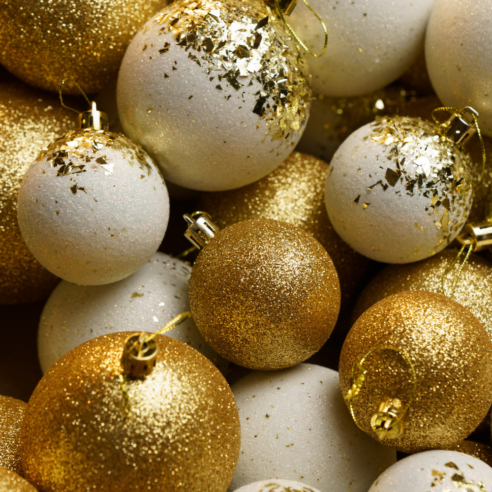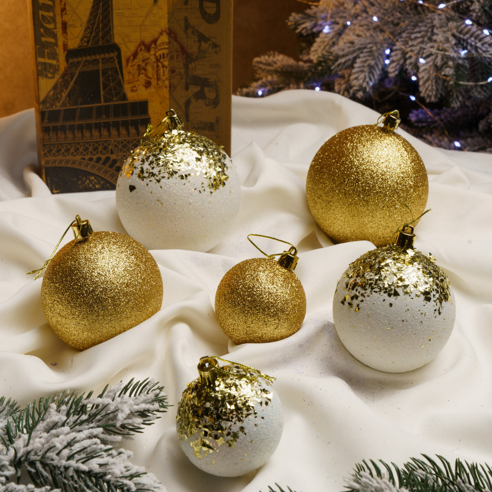 Різноманітність текстур: Кулі, покриті блискітками 3 розмірів у 2 відтінках придадуть твоїй ялинці особливої чарівності.