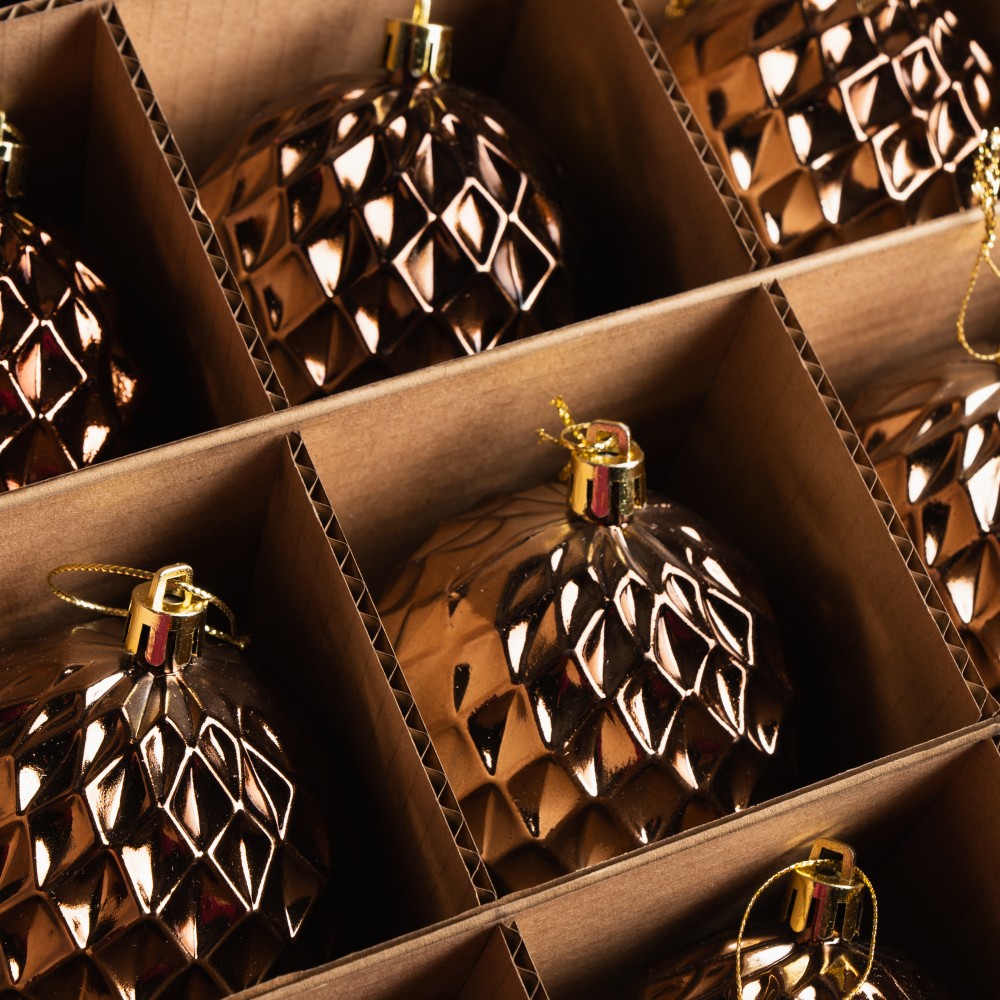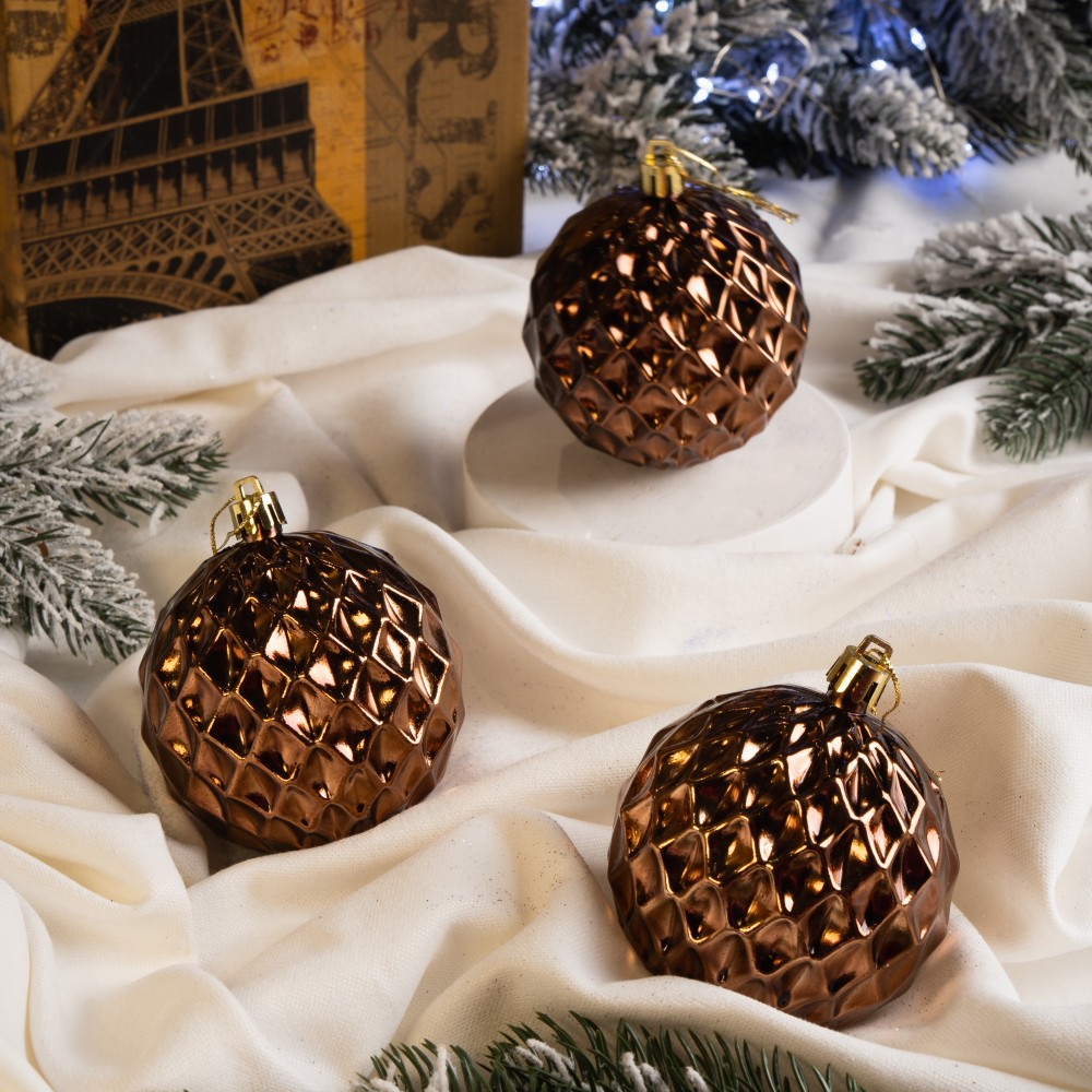Набір новорічних ялинкових куль із 18 штук створить чарівну атмосферу на вашій ялинці. Кулі мають оригінальну текстуру у вигляді бульбашок, що надає їм об'ємного вигляду та блиску. Завдяки високоякісному гальванічному покриттю, кожна прикраса відбиває світло, створюючи казкові переливи на ялинці, особливо при освітленні гірляндами. Вони виготовлені з міцного пластику, що робить їх довговічними та ідеальними для багаторічного використання. Текстура цієї новорічної кулі нагадує рельєфний візерунок, утворений з численних граней у формі ромбів. Завдяки такому дизайну куля виглядає об'ємною і чудово відбиває світло, створюючи додатковий блиск та глибину на ялинці. Такий візерунок додає прикрасі особливої вишуканості та святковості, роблячи її помітною навіть серед інших декорацій.