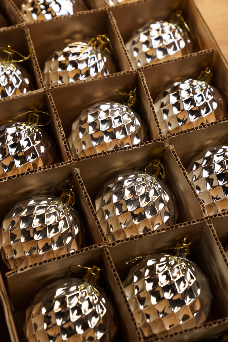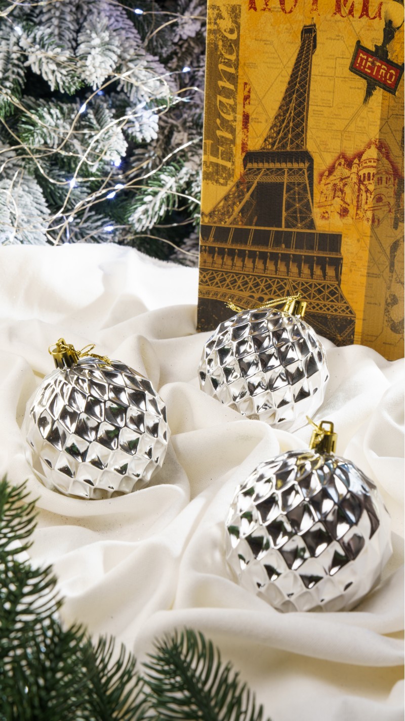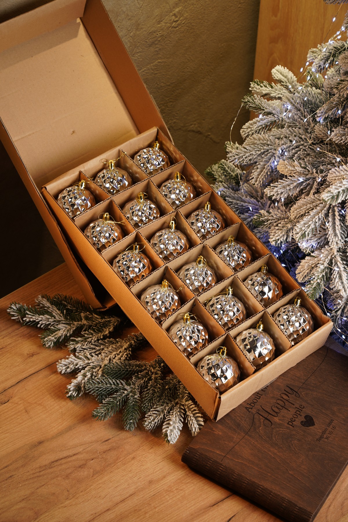 Набір новорічних ялинкових куль із 18 штук створить чарівну атмосферу на вашій ялинці. Кулі мають оригінальну текстуру у вигляді бульбашок, що надає їм об'ємного вигляду та блиску. Завдяки високоякісному гальванічному покриттю, кожна прикраса відбиває світло, створюючи казкові переливи на ялинці, особливо при освітленні гірляндами. Вони виготовлені з міцного пластику, що робить їх довговічними та ідеальними для багаторічного використання. Текстура цієї новорічної кулі нагадує рельєфний візерунок, утворений з численних граней у формі ромбів. Завдяки такому дизайну куля виглядає об'ємною і чудово відбиває світло, створюючи додатковий блиск та глибину на ялинці. Такий візерунок додає прикрасі особливої вишуканості та святковості, роблячи її помітною навіть серед інших декорацій.