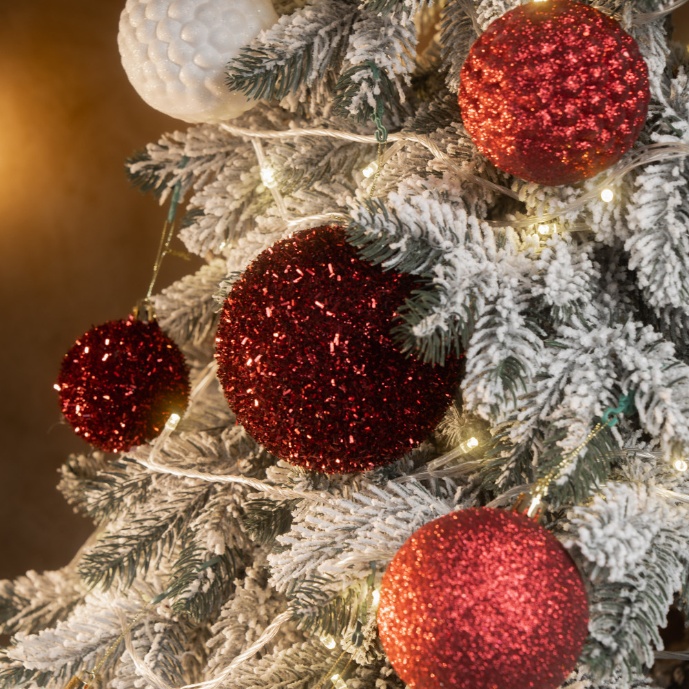Різноманітність текстур: Кулі, покриті блискітками на посіченою мішурою 3 розмірів у 2 відтінках придадуть твоїй ялинці особливої чарівності.