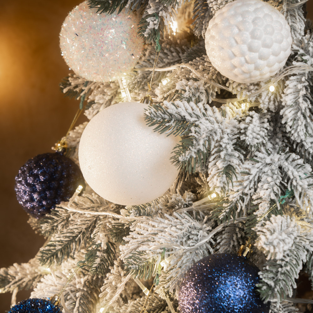 Різноманітність текстур: Кулі, покриті блискітками на посіченою мішурою 3 розмірів у 2 відтінках придадуть твоїй ялинці особливої чарівності.