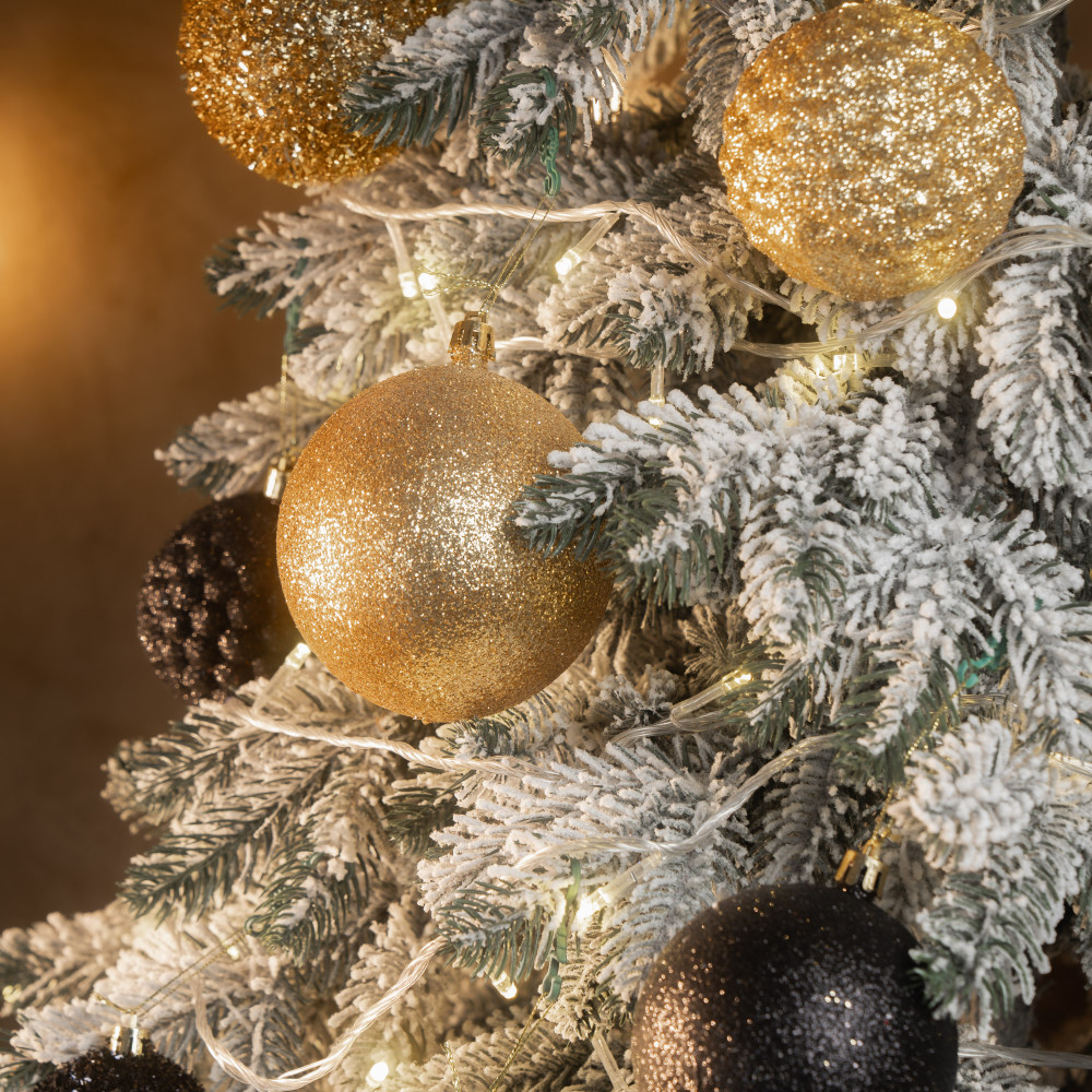 Різноманітність текстур: Кулі, покриті блискітками на посіченою мішурою 3 розмірів у 2 відтінках придадуть твоїй ялинці особливої чарівності.