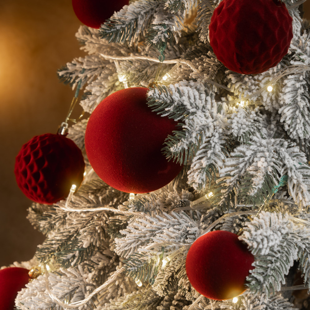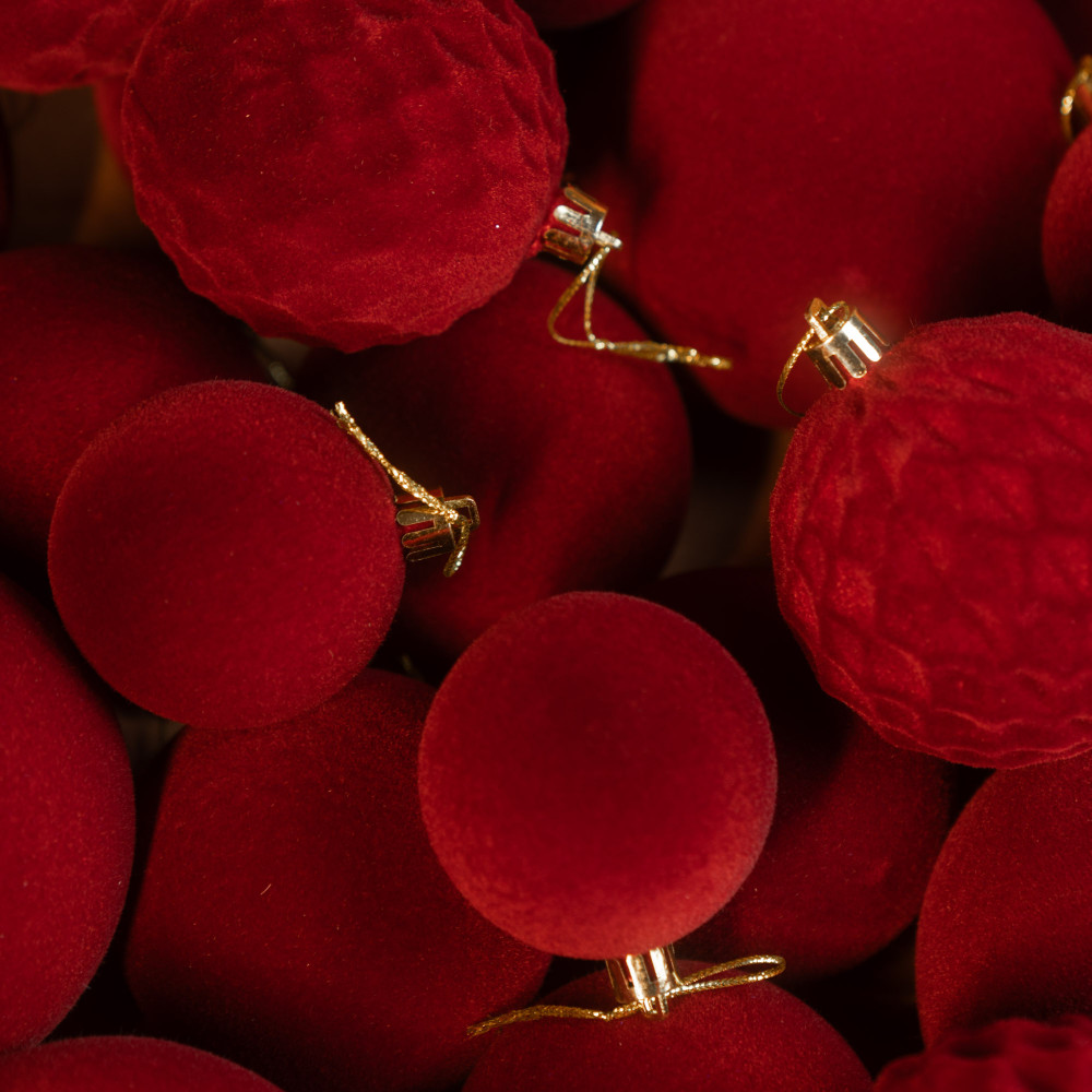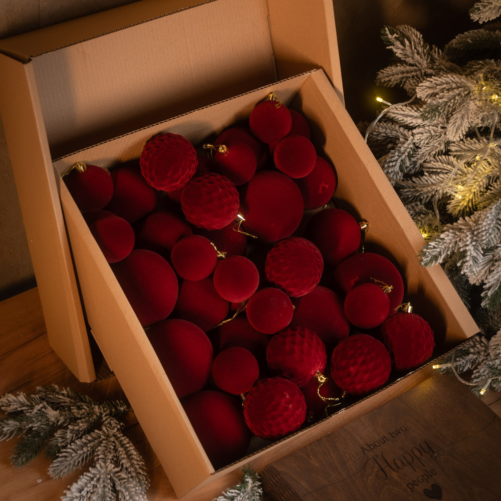 Різноманітність текстур: Оксамитові кулі 3 розмірів у 2 відтінках придадуть твоїй ялинці особливої чарівності.