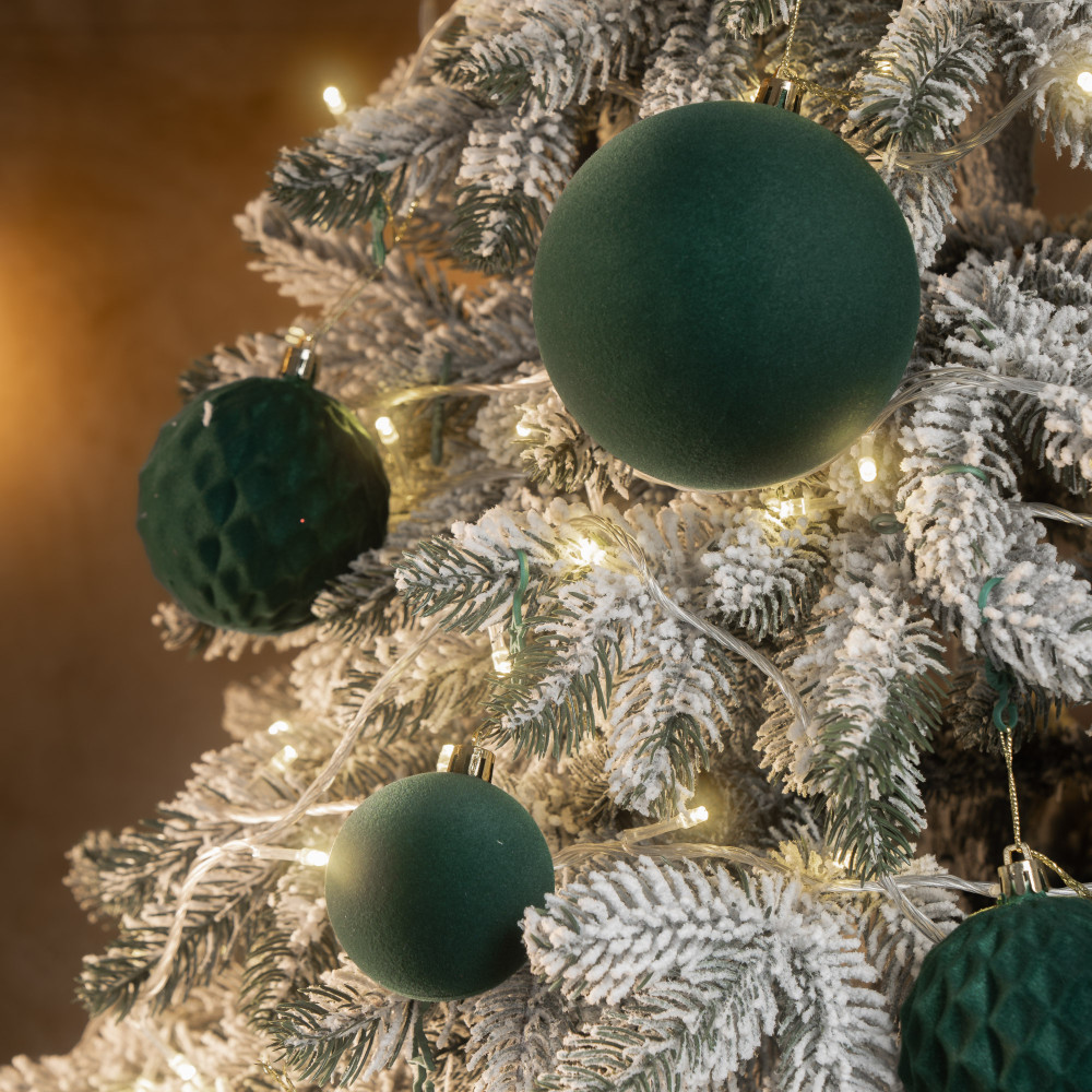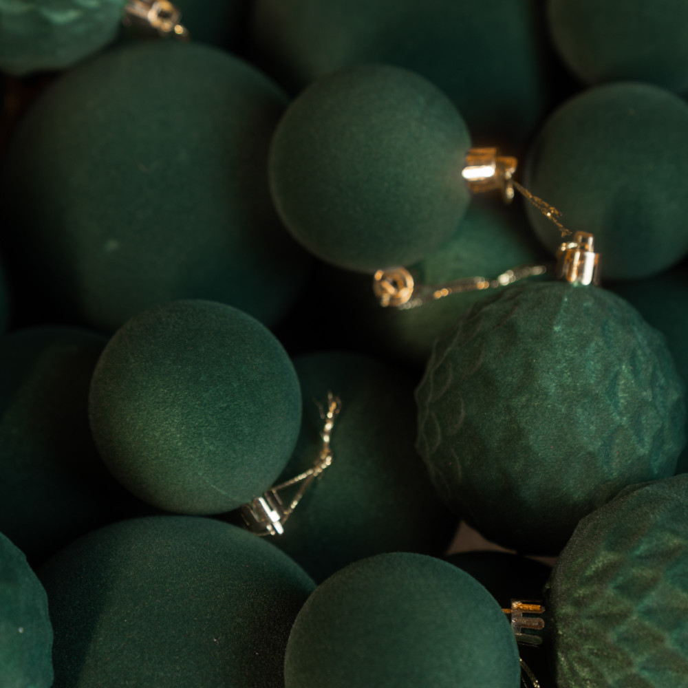 Різноманітність текстур: Оксамитові кулі 3 розмірів у 2 відтінках придадуть твоїй ялинці особливої чарівності.