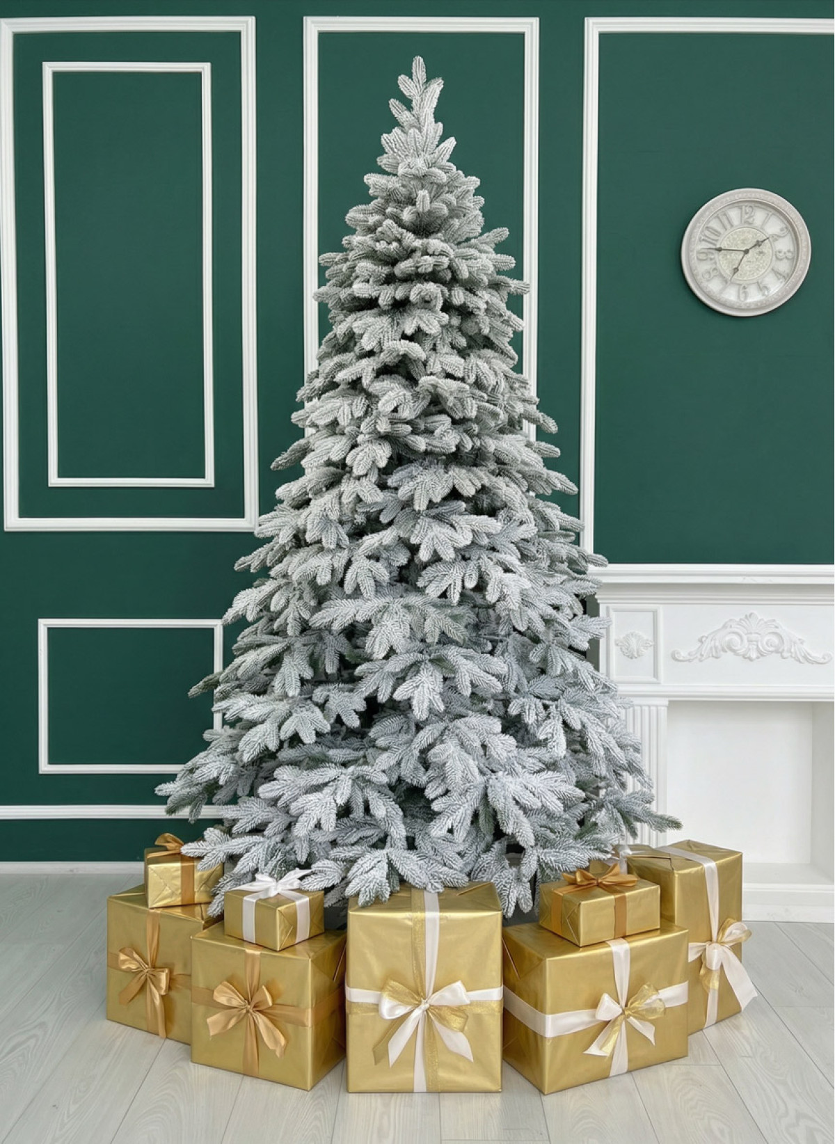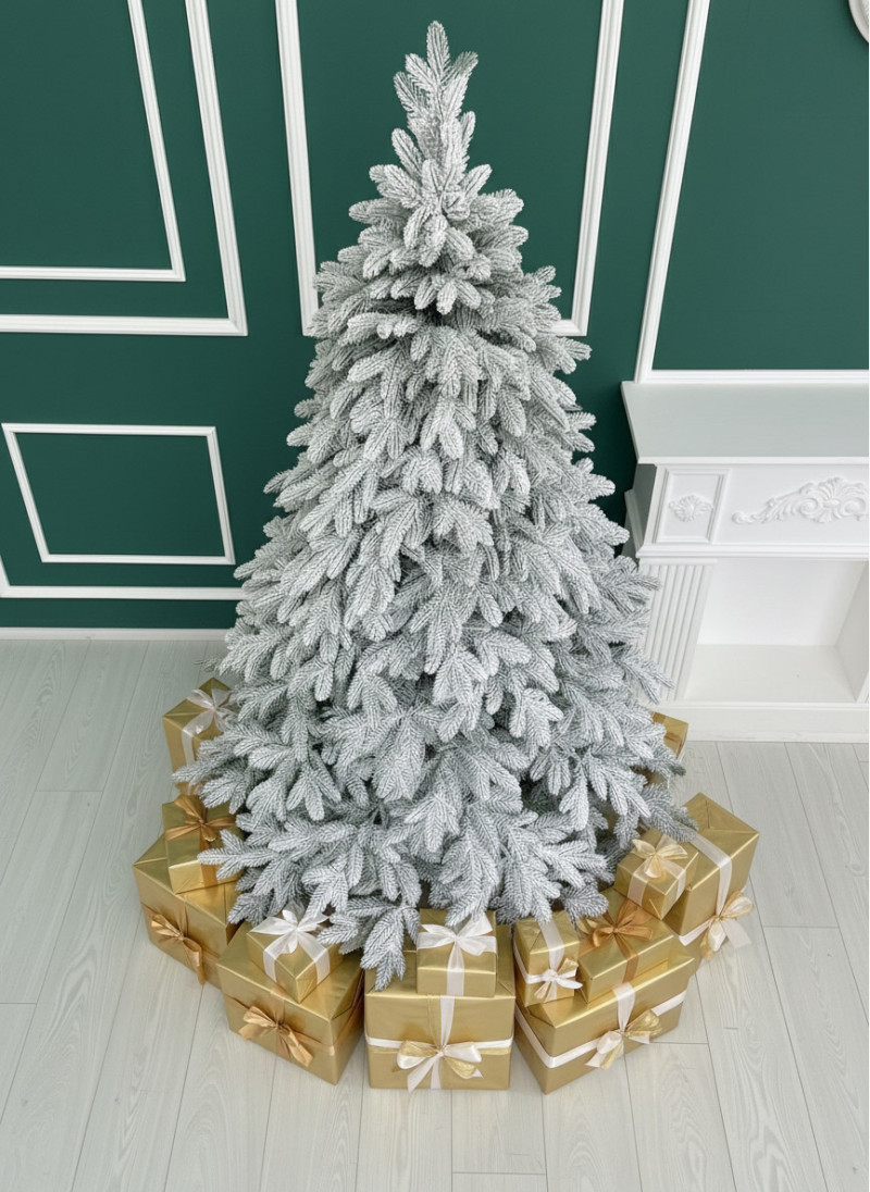 Вершина технології виробництва штучних ялинок. Завдяки спеціальному сучасному методу виробництва хвої вона має максимально реалістичний вигляд. Білий сніг із бавовни на гілках створює враження начебто вона лише із зимового лісу. Кожна гілочка та голочка на ялинці відливається у спеціальній формі, а потім кріпиться на металевий каркас ялинки. Через що самі голки не колються, не обсипаються, залишаються дуже пружними і зберігають свій вигляд протягом 10-15 років. Дана модель може стати головною прикрасою в будинку або квартирі, а також в офісному, адміністративному, торговому чи розважальному приміщенні. Дуже стійка, на металевій підставці ялинка принесе в будинок атмосферу справжнього свята, зимової казки, подарує незабутні враження та почуття легкості, радості, щастя напередодні Нового Року та Різдва.