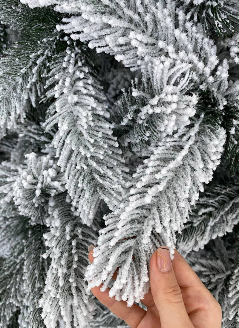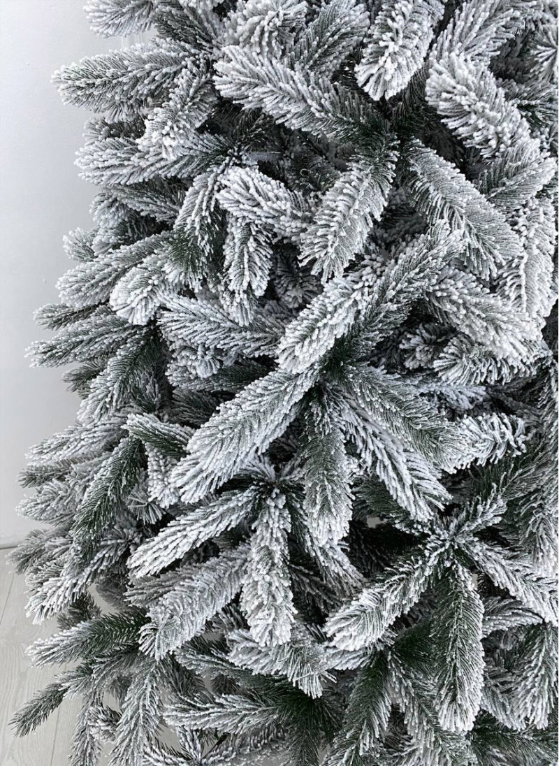 Вершина технології виробництва штучних ялинок. Завдяки спеціальному сучасному методу виробництва хвої вона має максимально реалістичний вигляд. Білий сніг із бавовни на гілках створює враження начебто вона лише із зимового лісу. Кожна гілочка та голочка на ялинці відливається у спеціальній формі, а потім кріпиться на металевий каркас ялинки. Через що самі голки не колються, не обсипаються, залишаються дуже пружними і зберігають свій вигляд протягом 10-15 років. Дана модель може стати головною прикрасою в будинку або квартирі, а також в офісному, адміністративному, торговому чи розважальному приміщенні. Дуже стійка, на металевій підставці ялинка принесе в будинок атмосферу справжнього свята, зимової казки, подарує незабутні враження та почуття легкості, радості, щастя напередодні Нового Року та Різдва.
