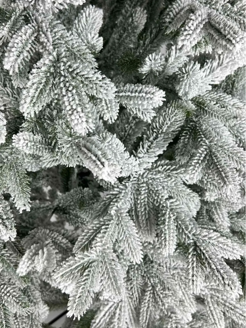 Вершина технології виробництва штучних ялинок. Завдяки спеціальному сучасному методу виробництва хвої вона має максимально реалістичний вигляд. Білий сніг із бавовни на гілках створює враження начебто вона лише із зимового лісу. Кожна гілочка та голочка на ялинці відливається у спеціальній формі, а потім кріпиться на металевий каркас ялинки. Через що самі голки не колються, не обсипаються, залишаються дуже пружними і зберігають свій вигляд протягом 10-15 років. Дана модель може стати головною прикрасою в будинку або квартирі, а також в офісному, адміністративному, торговому чи розважальному приміщенні. Дуже стійка, на металевій підставці ялинка принесе в будинок атмосферу справжнього свята, зимової казки, подарує незабутні враження та почуття легкості, радості, щастя напередодні Нового Року та Різдва.