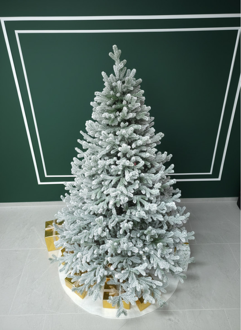 Вершина технології виробництва штучних ялинок. Завдяки спеціальному сучасному методу виробництва хвої вона має максимально реалістичний вигляд. Білий сніг із бавовни на гілках створює враження начебто вона лише із зимового лісу. Кожна гілочка та голочка на ялинці відливається у спеціальній формі, а потім кріпиться на металевий каркас ялинки. Через що самі голки не колються, не обсипаються, залишаються дуже пружними і зберігають свій вигляд протягом 10-15 років. Дана модель може стати головною прикрасою в будинку або квартирі, а також в офісному, адміністративному, торговому чи розважальному приміщенні. Дуже стійка, на металевій підставці ялинка принесе в будинок атмосферу справжнього свята, зимової казки, подарує незабутні враження та почуття легкості, радості, щастя напередодні Нового Року та Різдва.