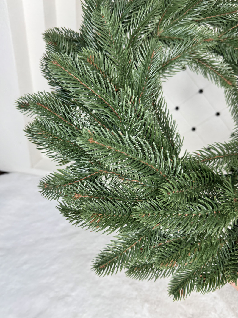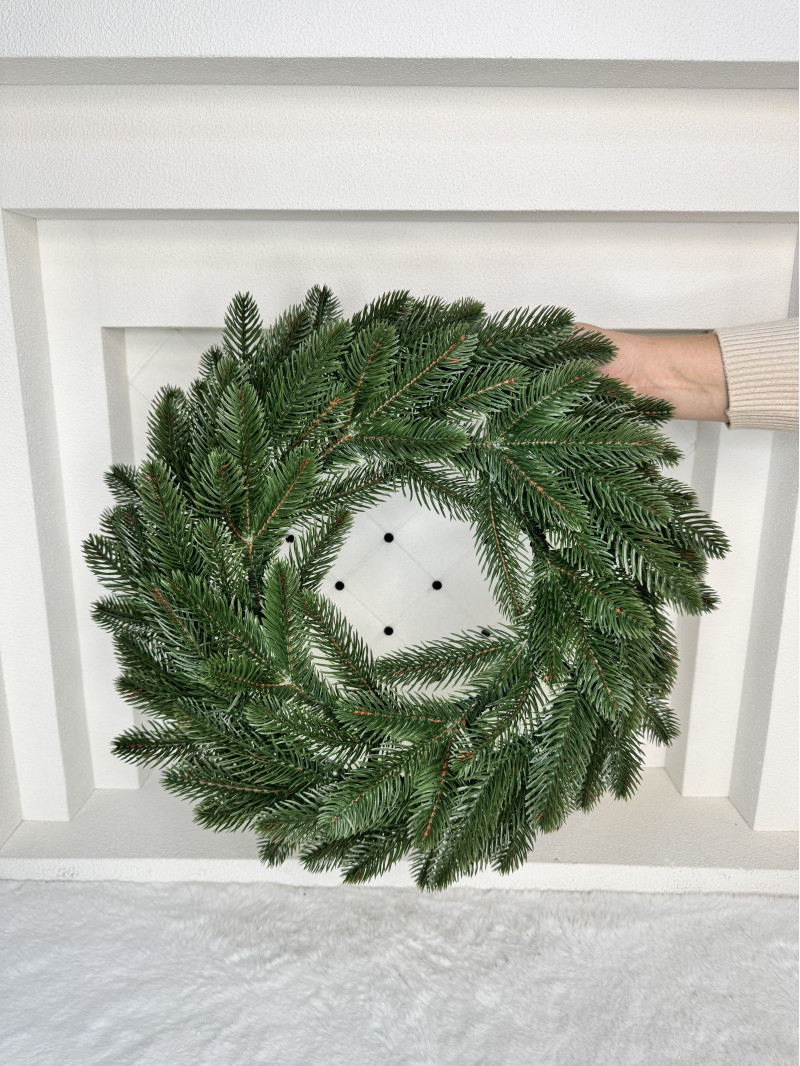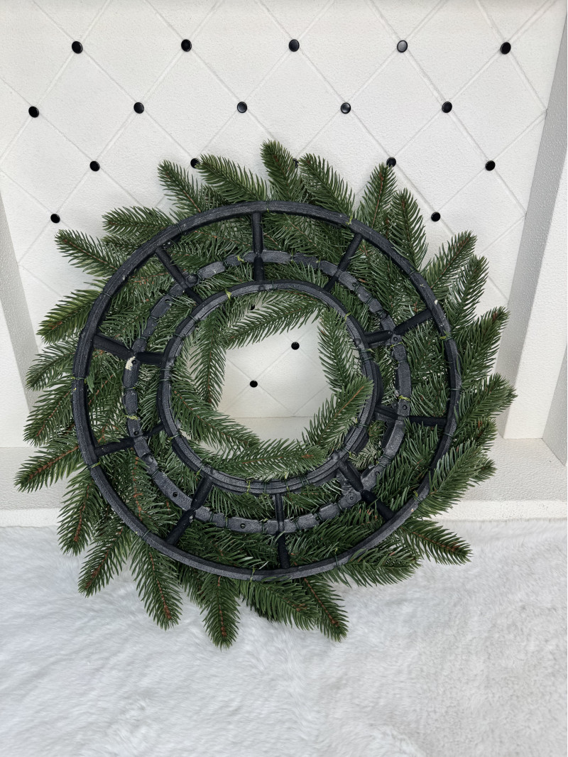 Віночок із литої гілочки на міцному пластиковому каркасі — стильна та довговічна прикраса, яка створить у домі затишну новорічну атмосферу. Завдяки натуральному вигляду литої хвої він чудово доповнить будь-який інтер’єр: від класичного до сучасного. Легкий, акуратний та універсальний — стане ідеальним акцентом на дверях, стіні чи камінній полиці.