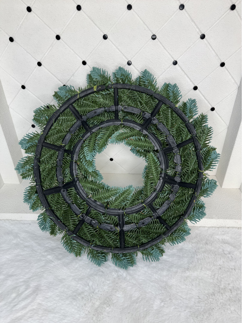 Віночок із литої гілочки на міцному пластиковому каркасі — стильна та довговічна прикраса, яка створить у домі затишну новорічну атмосферу. Завдяки натуральному вигляду литої хвої він чудово доповнить будь-який інтер’єр: від класичного до сучасного. Легкий, акуратний та універсальний — стане ідеальним акцентом на дверях, стіні чи камінній полиці.